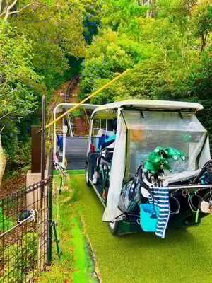 女子のコニカミノルタ杯も行われる長崎県のパサージュ琴海アイランドゴルフクラブにやってきました。長崎空港から直結の連絡船に乗る事25分。バスにて10分。めちゃくちゃ便利です!なかなかの秘境なので1度は行ってみたかったコース。カートごと登っていくゴンドラや鹿までお出迎えしてくれたり驚きもあり、景色もコースも最高でした。