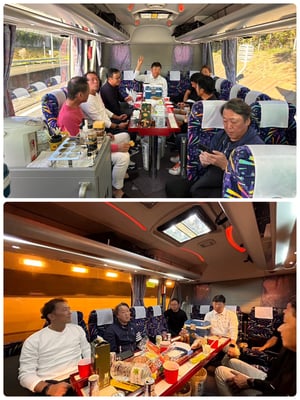 技術経営部にご尽力いただきまして1年間お疲れ様ということで兵庫県の淡路島に1泊で行ってきました。姫路城~舞子海上プロムナード~ホテルニュー淡路~洲本カントリーの工程です。朝の8時からバス宴会が始まり気の合う仲間との旅行は最高ですね😁書ききれないほどの面白話の詰まった旅行でした。また来年も行きたいですね~