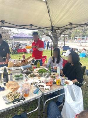 所属団体主催のお花見を地元の市営公園で行いました。実はこの団体の中にシェフがいてます(^^♪ なのでこの方が来るBBQは一味も二味も違います!いつも驚かされるメニューで、味はもちろん、見た目もバリエーションもプロです!周りの他のお客さん達はだいたい二度見していきます😁 全てに感謝です👏