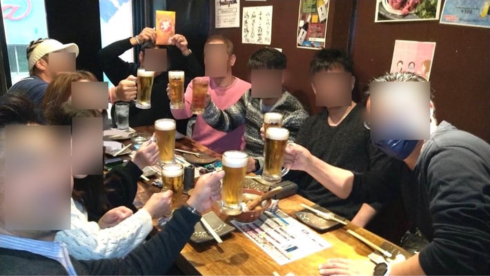 こちらの団体では毎年1月2週目の日曜日のお昼から飲み会が始まります… だいたい例年では4次回までは当たり前!回が進むにつれ1人、2人とダウンしていき、いつも最終は4人くらいの猛者しか残りません… ちなみに今年は最後まで残れませんでした(-_-;)