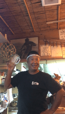 大好きな店長に会いに・・・石垣島で仲良くなった居酒屋の店長ですが、昼間は釣り船の船長という顔を持ってまして、いつも昼間一緒に釣りして、釣れた魚を夜に料理していただいて美味しくいただく。って流れが定番になってます。店長のビールの一気飲みの芸が凄すぎて・・・(^^;)